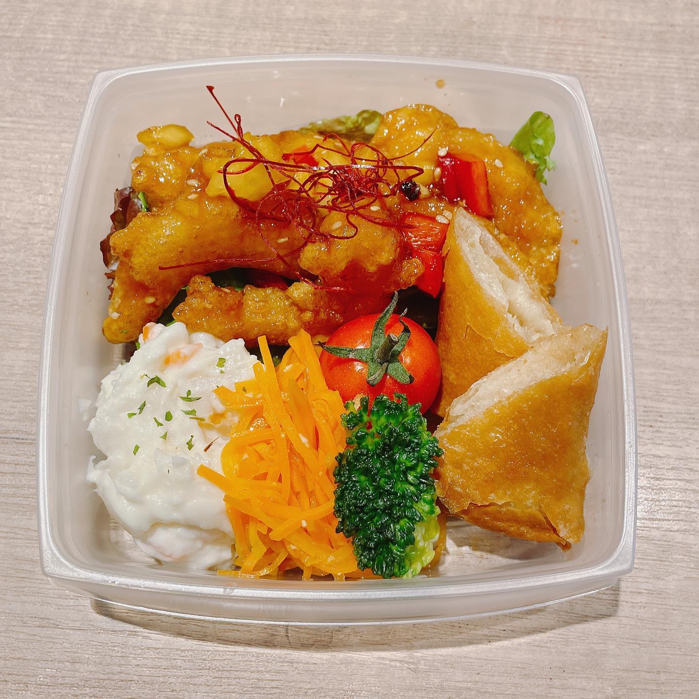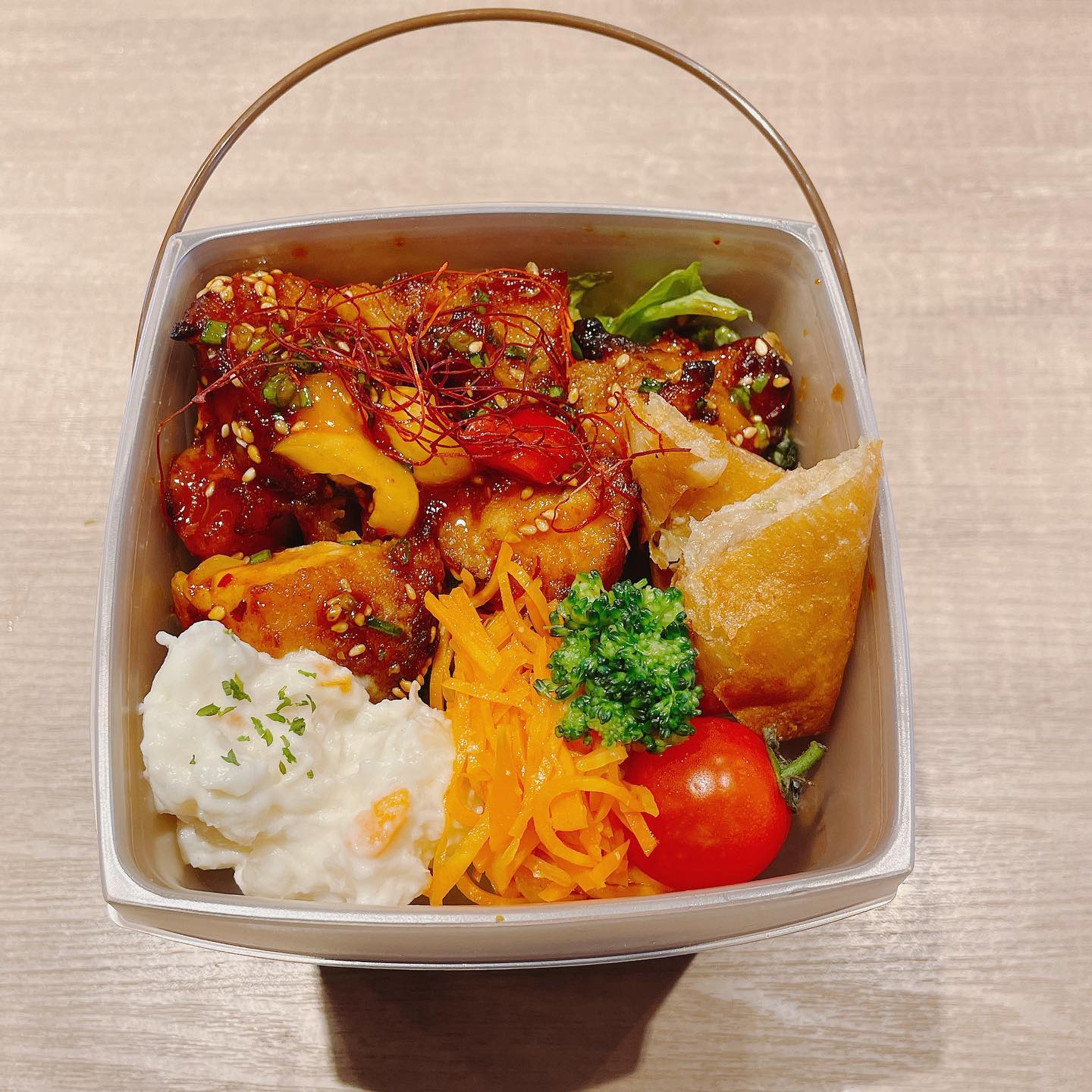 ヤンニョムチキン弁当 下味をしっかりつけたチキンとヤンニョムソースがよく絡んでお米が進みます!