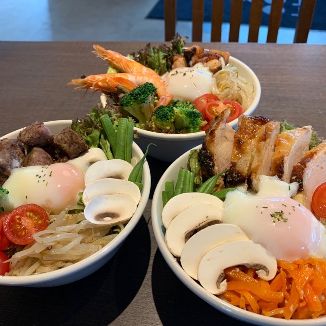 上下3種類ずつあり9通りのサラダ丼となっております!