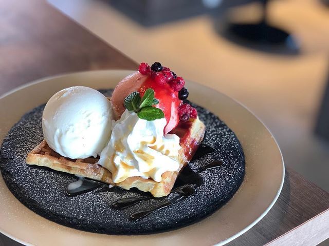 焼きたちワッフルの上に濃厚なジェラートを✨