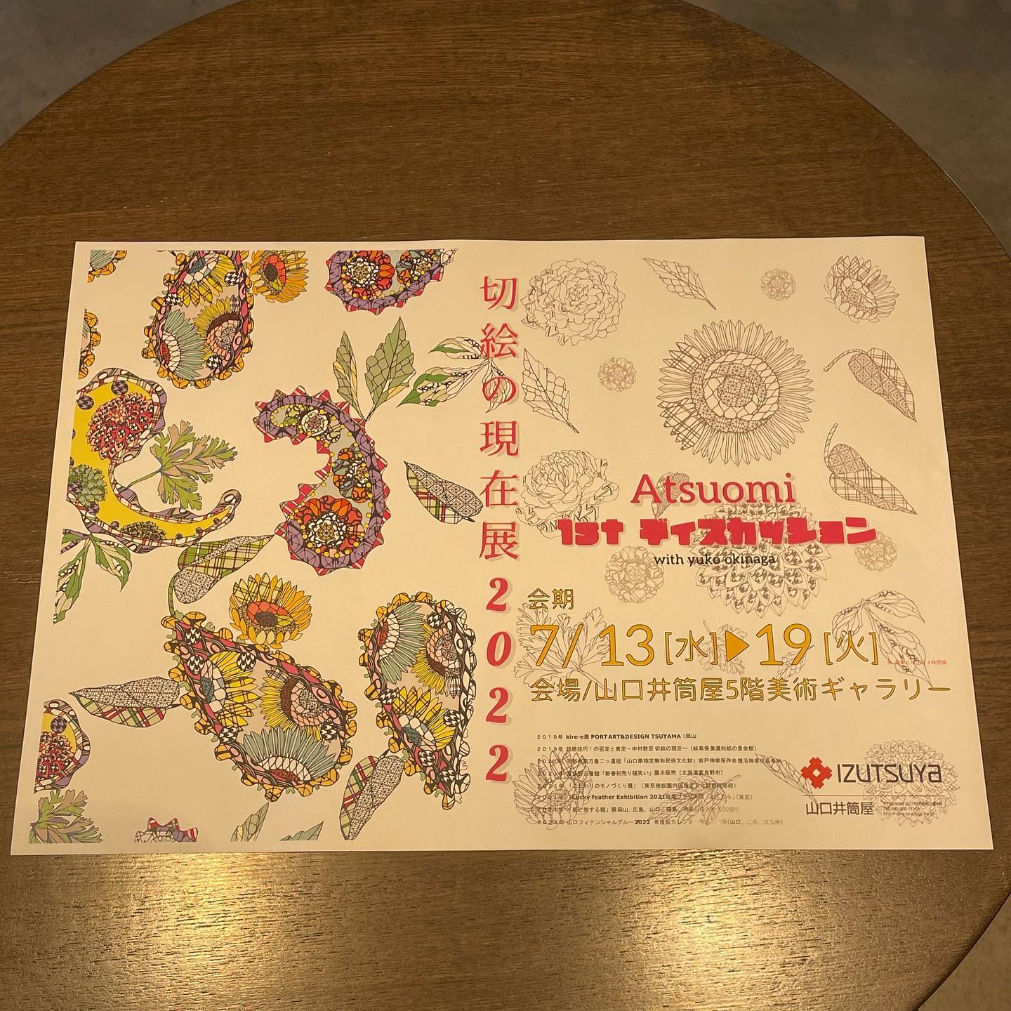 7-13〜19 山口井筒屋5階で『Atsuomi』さんの切絵の現在展が行われます。