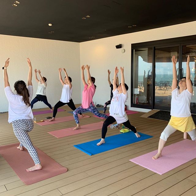 お天気良すぎて 半外テラスでyogaをする事になりましたが “景色最高”時折吹く風が気持ち良く ステキな時間を過ごす事が出来ました。 Yogaの後のスムージーが美味しかったです。